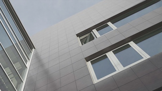 Вентилируемые фасады из керамогранита – современные облицовочные системы, которые защищают наружные поверхности строение от природных катаклизмов, влаги, ультрафиолета, грибков, насекомых и плесени. Декоративное покрытие из керамогранита дарит зданию респектабельность и привлекательность. Навесная система гарантирует сохранение комфортного микроклимата в помещениях, что позволяет оптимизировать потребление тепловой энергии, а значит, сэкономить средства при оплате коммунальных услуг. При этом вентилируемый фасад из керамогранита не требует специального обслуживания. Такая облицовочная система гарантированно прослужат более 50 лет.