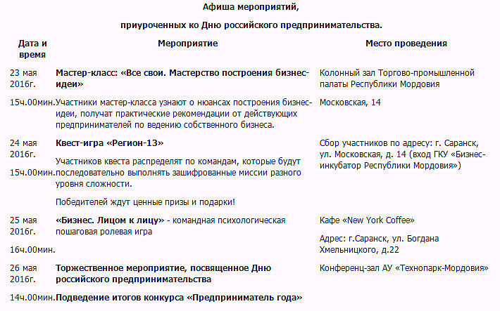 МордовМедиа, 23 мая. Сегодня в столице республики стартует неделя предпринимательства. В течение нескольких дней в Саранске будут проходить мероприятия, в которых примут участие представители бизнес-сообщества и органов государственной власти региона.