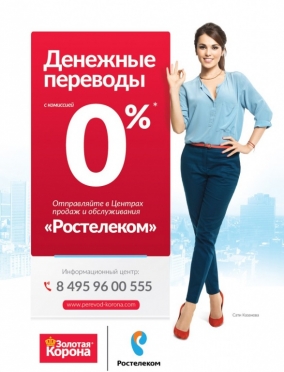 С июня 2016 года клиентам во всей розничной сети «Ростелекома» доступен специальный тариф – комиссия 0% за денежные переводы «Золотая Корона» в страны СНГ и дальнего зарубежья.