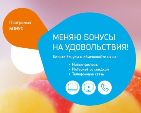 Федеральная программа «Бонус» предполагает начисление участникам бонусных баллов за пользование услугами компании с возможностью их обмена на специальные предложения из каталога подарков, в котором широко представлены дополнительные сервисы, опции и скидки на продукты компании. Так, абоненты Интерактивного ТВ смогут в обмен на баллы смотреть фильмы из «Видеопроката», подключить пакеты телеканалов и сервис «Управление просмотром». Интернет-пользователи имеют возможность получить скидки на доступ к сети Интернет, активировать антивирус. Пользователи телефонии могут воспользоваться дополнительными минутами разговоров.