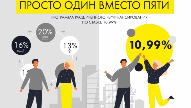 В рамках новой программы заемщики смогут рефинансировать до пяти кредитов сторонних банков под залог приобретаемой, имеющейся в собственности или строящейся квартиры по ставке 10.99% при условии, что хотя бы один из кредитов —ипотечный. Программа распространяется на кредитные карты, а также на кредиты на недвижимость, потребительские цели и приобретение автомобиля. Кроме того, у клиентов появится возможность получить дополнительные денежные средства по более выгодной ипотечной ставке и объединить имеющиеся кредиты с супругом или супругой.