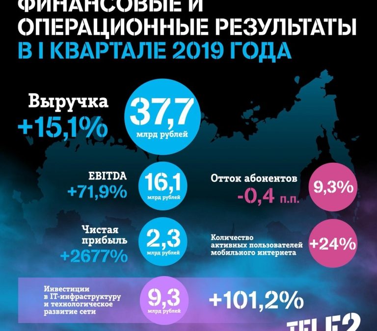 В I квартале 2019 года Tele2 достигла следующих основных финансовых показателей: