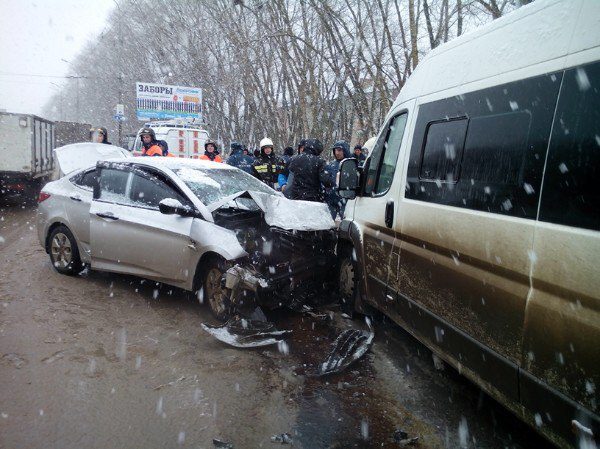 По данным Госавтоинспекции, 27-летний водитель «Приоры» выехал на встречную полосу и врезался «Хендай Солярис», за рулём которой находился 52-летний мужчина. После удара иномарку отбросило на микроавтобус «Ситроен 45422», который по инерции отбросило на пассажирский автобус «ЛИАЗ 525626».