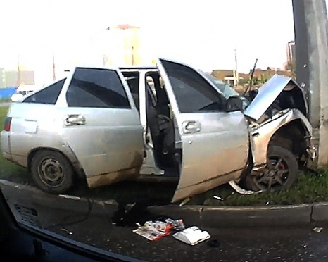Водитель «двенашки» с шашечками службы такси на большой скорости врезался в световую опору на кольцевой дорожной развязке около школы № 2.