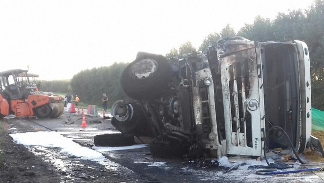 «В результате столкновения автомашина совершила опрокидывание на проезжую часть дороги, после чего произошло возгорание кабины», — рассказали в республиканском ГИБДД.