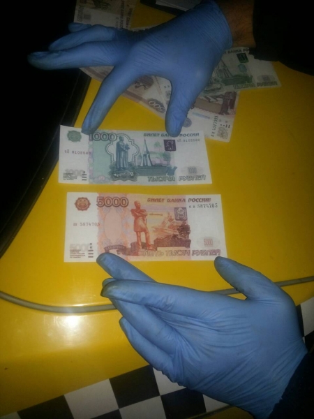 Уже через 30 минут сотрудники ДПС остановили Hyundai Solaris, подходящий под ориентировку. Кроме водителя в салоне иномарки находились и все трое обвиняемых. Во время досмотра полицейские обнаружили две фальшивые купюры достоинством 5 тыс рублей, и 14 — достоинством 1 тыс рублей.