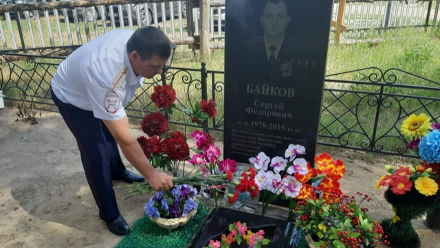 3 июля сотрудники Госавтоинспекции возложили цветы на могилу погибшего при исполнении своих служебных обязанностей старшего инспектора ДПС старшего лейтенанта полиции Сергея Байкова. Мужчина погиб под колесами «девятки» в 2015 году.