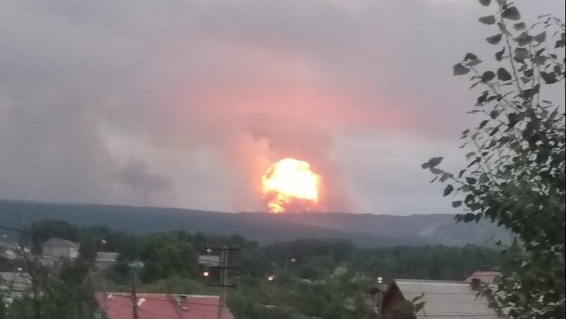 Хранилище пороховых зарядов в Красноярском крае загорелось днём 5 августа. Осколки от взрывов разлетались на 15 километров. Свыше 9000 жителей близлежащих населённых пунктов были эвакуированы. Ещё более 6000 выехали самостоятельно. Следком России сообщил, что по данному факту возбуждено уголовное дело. Также ведомство подтвердило гибель одного человека. Ещё несколько человек получили травмы. Как сообщается на сайте красноярского правительства, за медицинской помощью обратились 13 человек, шесть госпитализированы.