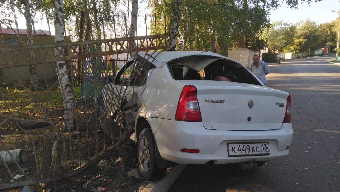 В Саранске — очередная авария. ЧП произошло около пяти часов вечера на Пушкина, 13. По предварительным данным, водитель белого «Рено Логан» ехал на большой скорости. Его занесло на дороге, и легковушку выбросило с дороги на металлический забор. После инцидента виновник аварии с места ДТП сбежал. По словам очевидцев, автомобилист был пьян.
