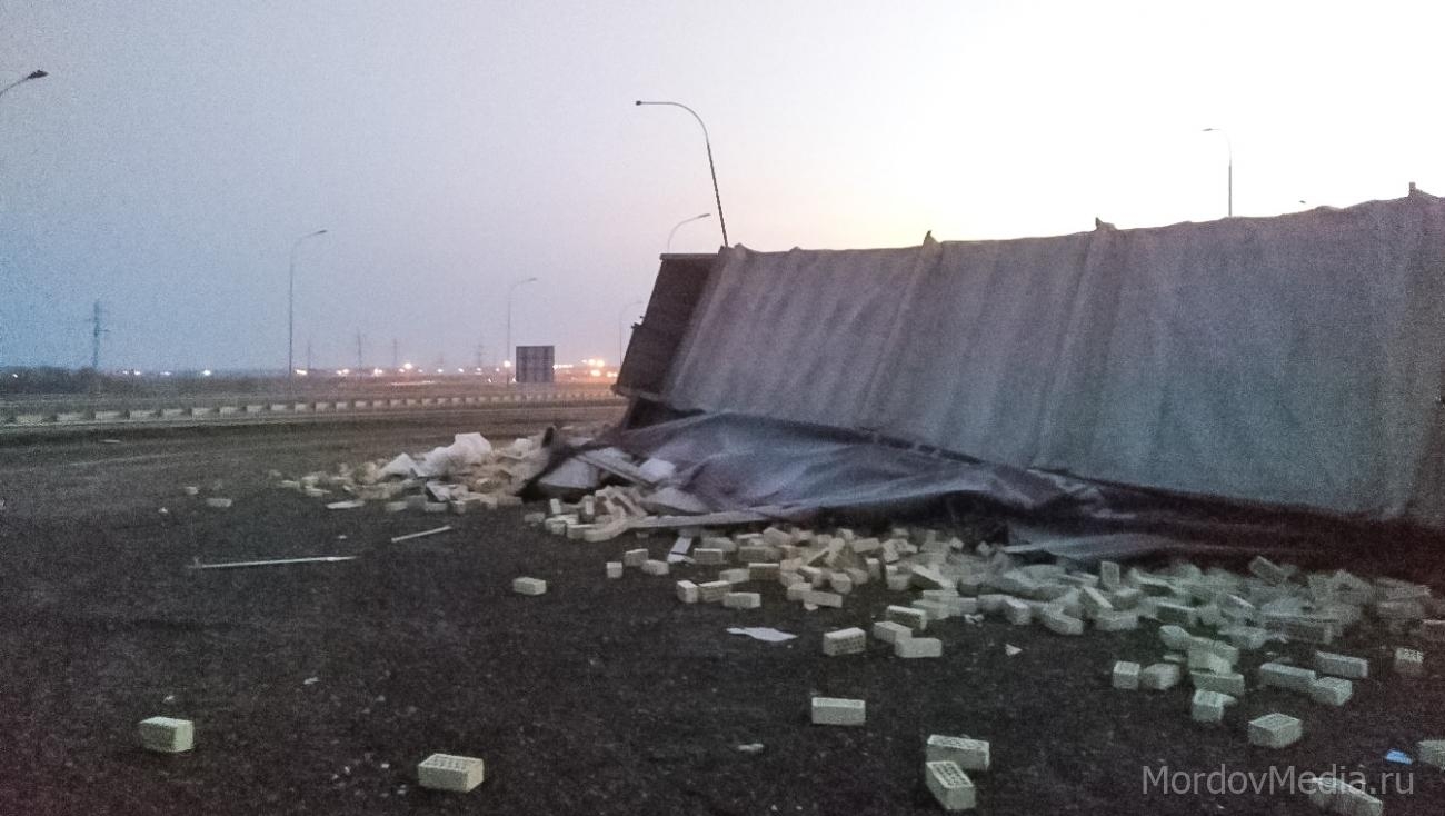 Фура, перевозящая облицовочный кирпич, перевернулась на новой развязке «Лук» около теплиц. ДТП произошло вечером в четверг, 26 декабря. Как сообщили в пресс-службе МЧС Мордовии, сигнал на пульт дежурного поступил около восьми часов вечера. Сотрудники ведомства отправились на помощь водителю. В ликвидации последствий ДТП принимали участие восемь спасателей с техникой.