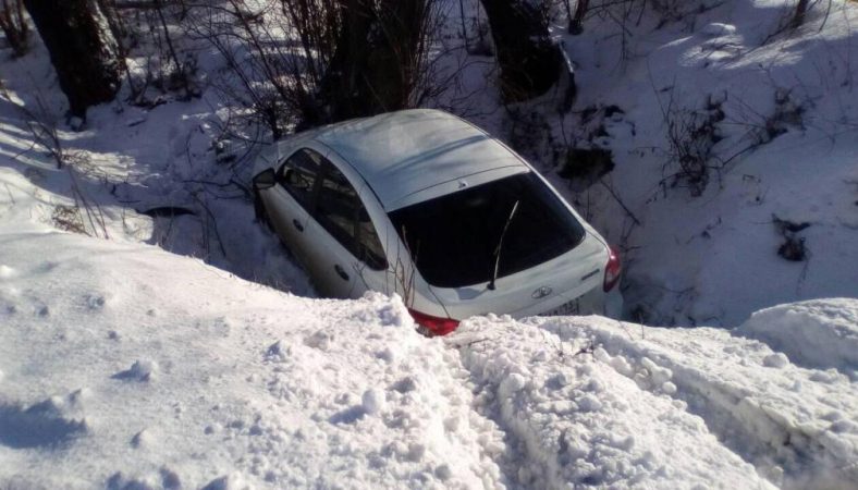 В Мордовии автомобилист едва не угробил пассажирку, слетев с заснеженной трассы
