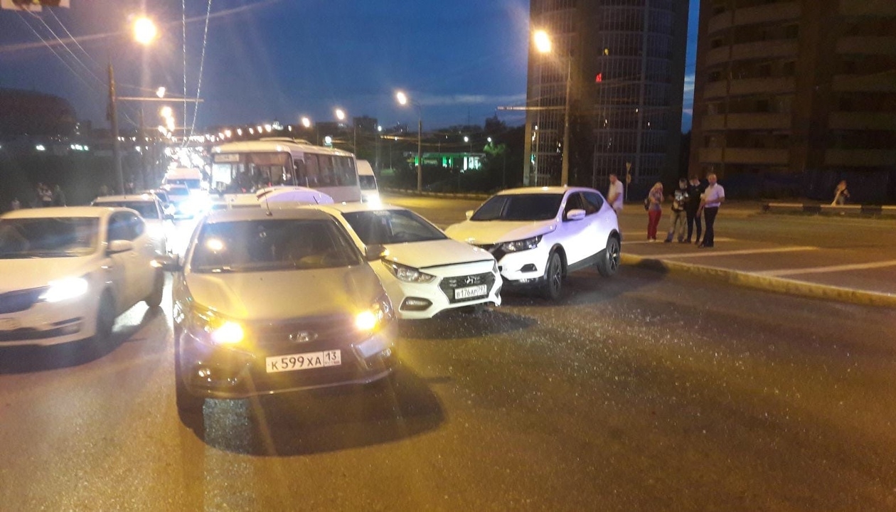 На встречке автоледи врезалась в «Хендэ Солярис». После удара «Хендэ» отбросило в попутную «Ладу Весту», а «Веста» по инерции столкнулась с «БМВ Х6».