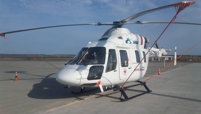В кабине находятся два пилота. Также за пациентом вылетела реанимационная бригада.