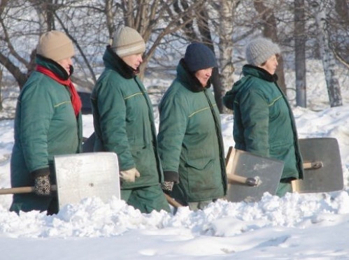 Именно так Петр Тултаев охарактеризовал тот факт, что до сегодняшнего времени тяжелый, мокрый снег приходится убирать вручную и чаще всего этой работой занимаются женщины.