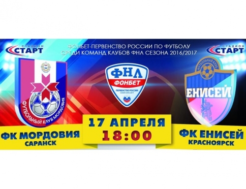 Сегодня, 17 апреля, на стадионе «Старт» состоится матч ФОНБЕТ-Первенства России по футболу среди команд клубов ФНЛ. «Мордовия» примет на своём поле красноярский «Енисей».