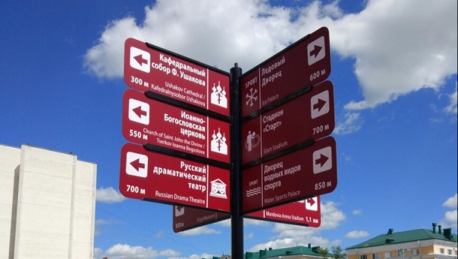 В столице Мордовии продолжается установка навигационных знаков для туристов. Всего на улицах Саранска появится 20 навигационных опор, указывающих направление до наиболее значимых с точки зрения туриста объектов: музеев, театров, достопримечательностей, объектов спорта и транспортной инфраструктуры. Чаще, чем к другим, направление будет указано до музея им. Эрьзи, собора Феодора Ушакова, стадиона «Мордовия Арена», Советской площади и площади Тысячелетия.