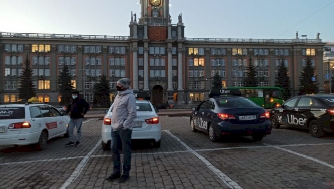 В Екатеринбурге таксисты встали на площади 1905 года в знак протеста против установки защитных кранов в машинах. Об этом сообщает Znak.com.