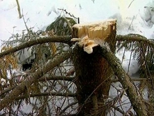 Сотрудники следственно-оперативной группы, выехавшие на место незаконной рубки, оперативно установили личность «лесоруба», а также изъяли с места происшествия срубленную ель, бензопилу, автокран и машину «КАМАЗ».