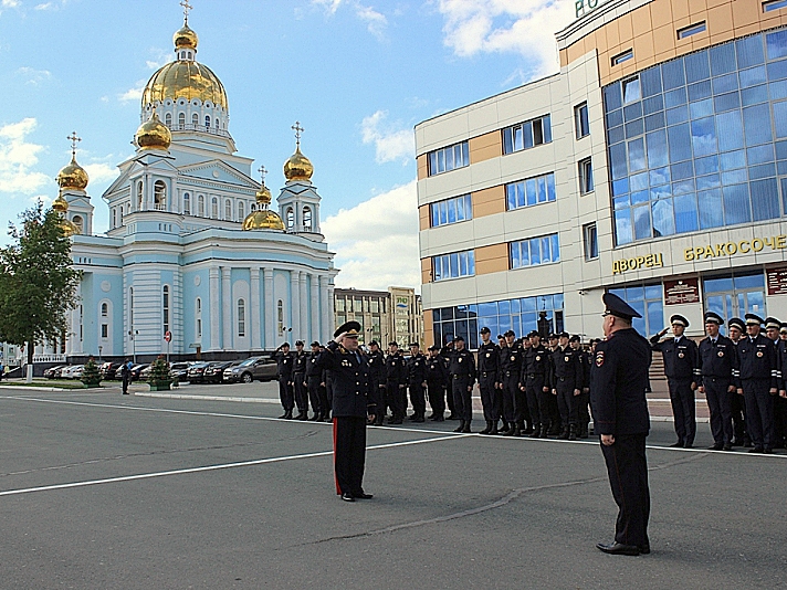 МордовМедиа, 20 мая. В четверг на Площади Победы состоялся гарнизонный развод нарядов перед заступлением на службу. На построении присутствовали около 200 стражей правопорядка.