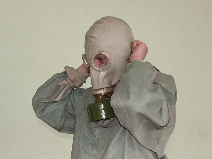 На другом этапе специалисты проверили готовность участников к действиям на заражённом участке местности. Дети на время надевали общевойсковые защитные комплекты и передавали в таком виде друг другу эстафету.