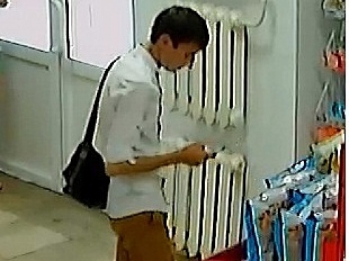 При просмотре записи с камер видеонаблюдения магазина полицейские установили приметы подозреваемого: на вид 20-25 лет, неславянской внешности, худощавого телосложения, рост 165-170 см, волосы темные короткие. Был одет в белую рубашку, рукав короткий (завернутый в локтях), коричневые джинсы, коричневые мокасины.