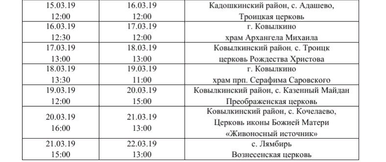 Икона пробудет в Мордовии до конца марта и за это время «объедет» более 20 приходов в Саранске, Ромоданове, Кочкурове, Инсаре, Ковылкине, Лямбире, Ичалках и других населённых пунктах.