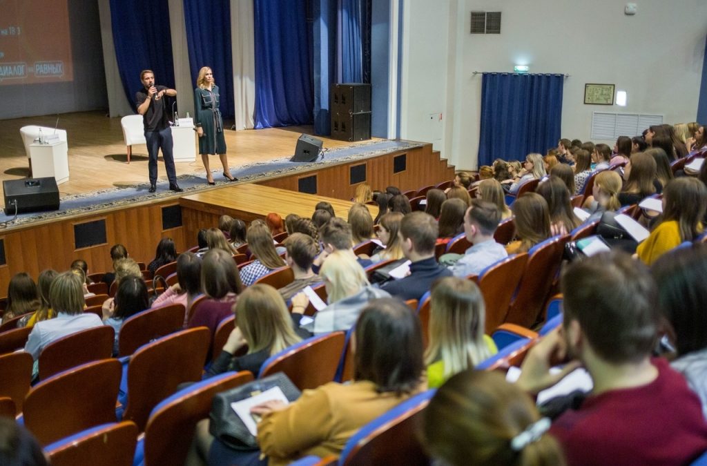 В рамках проекта дискуссионных студенческих клубов «Диалог на равных» в столице Мордовии состоялась встреча с актером театра и кино Романом Маякиным, а также с теле-и радиоведущей Еленой Швец. Тема встречи «СМС самому себе».