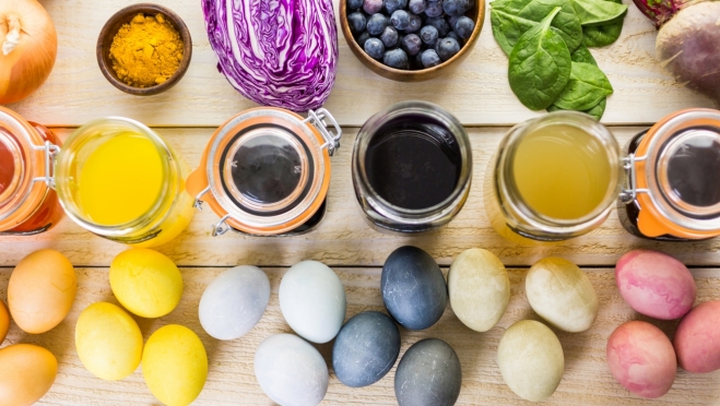 Так, яйца лучше окрашивать природными красителями. Можно использовать любые овощи, фрукты, ягоды и даже зелень и приправы, обладающие пигментом. Например — луковой шелухой, краснокочанной капустой, свеклой, кофе, листьями шпината и крапивы, куркумой, паприкой, зеленым чаем, каркаде. На этикетках безопасного пищевого красителя должен быть обозначен шифр одной из добавок: Е122, Е 163, Е110, Е104, Е 142, Е132, Е 120, Е160, Е181, Е124, Е133, Е131, Е102.