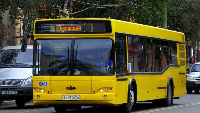 №№ 7, 13, 15, 31 – СК «Мордовия» – ул. Строительная – ул. Титова – ул. Васенко – ул. Ботевградская – ул. Старопосадская – ул. А. Невского – ул. Севастопольская – ул. Красная далее по действующим маршрутам;