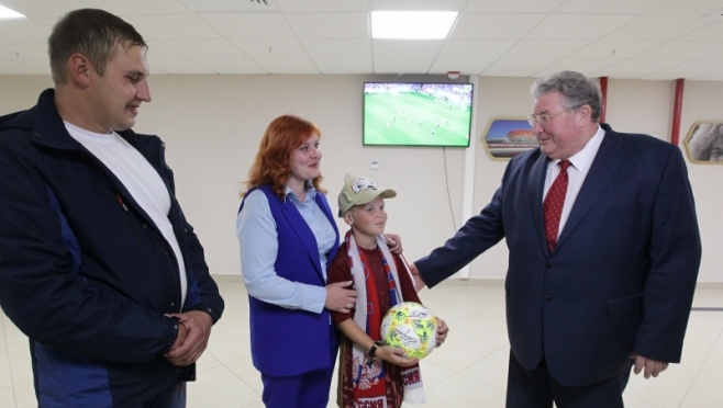 Футбольный мяч с автографами всех игроков российской национальной сборной и фирменную футболку мальчику вручил глава РМ Владимир Волков. Ранее, на торжественной линейке в школе, глава Дубенского района Сергей Плешаков передал Кириллу благодарность главы РМ, часы, рюкзак со школьными принадлежностями, спортивную экипировку и билеты на матч молодежных сборных команд России и Сербии.
