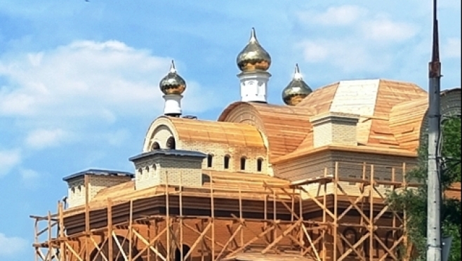 Первая партия золоченых куполов, покрытых нитритом титана, воссияла над храмом летом. Всего их будет смонтировано тринадцать.