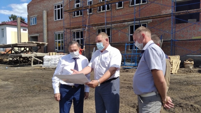 На сегодня уже завершено возведение стен, ведутся кровельные работы, утепление стен. Вокруг здания облагораживают территорию. Строительство ведёт подрядчик ПАО «Ремстрой».