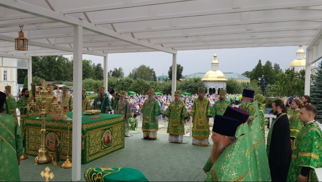 Престольный праздник в Дивеево собрал архиереев Русской православной церкви для соборной молитвы. Божественную литургию под открытым небом возглавил митрополит санкт-петербургский и ладожский Варсонофий. В числе тех, кто ему сослужил, были митрополит саранский и мордовский Зиновий, епископ краснослободский и темниковский Климент, епископ ардатовский и атяшевский Вениамин.