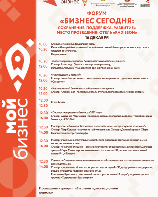- 16 декабря — форум «Бизнес сегодня: сохранение, поддержка, развитие».