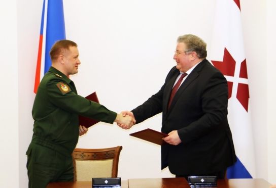 МордовМедиа, 10 марта. Подписано соглашение о сотрудничестве Республики Мордовия с ЦСКА. Встреча главы региона-13 Владимира Волкова с руководителем Центрального спортивного клуба армии, уроженцем Саранска, полковником Михаилом Барышевым состоялась накануне.