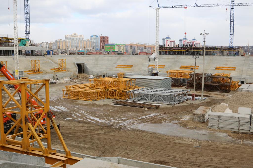 Как сообщают в пресс-службе главы РМ, На стадионе завершена забивка свай — всего более 12 тысяч штук. Залито 45 602 куб метра монолитных железобетонных конструкций. Завершены монолитные работы вспомогательных сооружений.