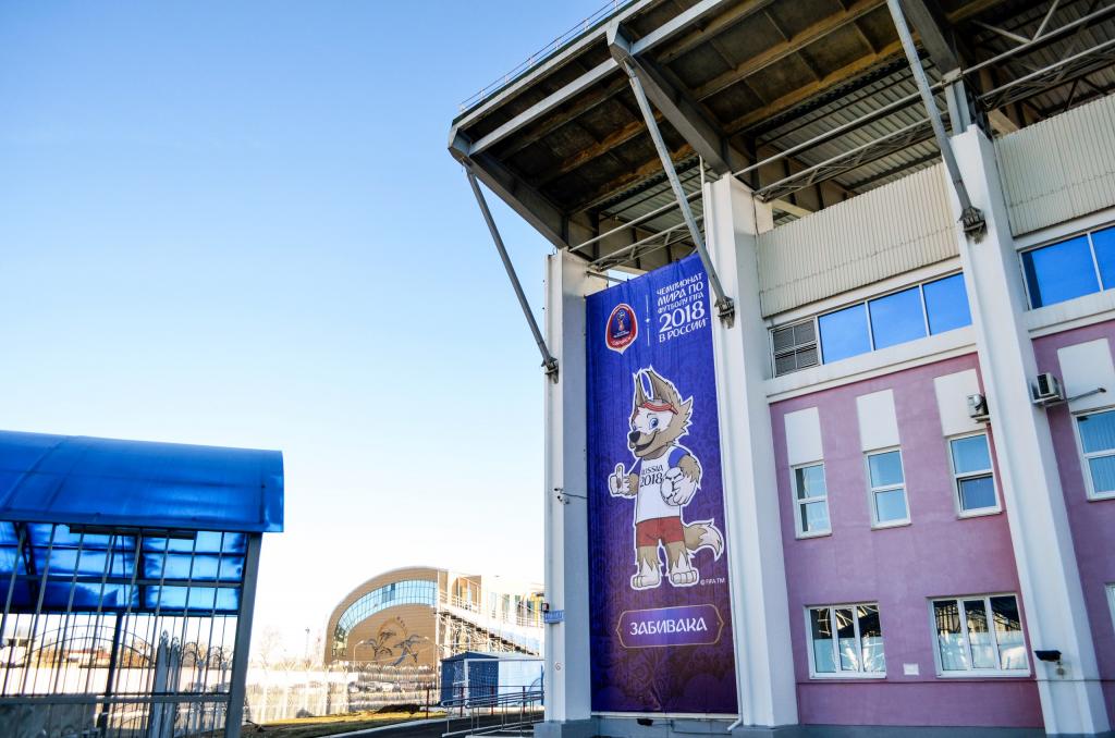 Баннеры с изображением животного-талисмана чемпионата мира 2018 года украсили фасад стадиона «Старт». Первыми, кому удалось сфотографироваться с Забивакой, стали футболисты футбольного клуба «Мордовия».