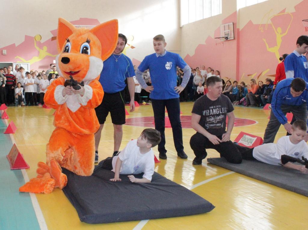 В спортивном зале школы была подготовлена специальная площадка, где пять команд соревновались в беге с эстафетными палочками, в метании теннисных мячей, в скорости по прохождению через тоннель из обручей, в конкурсах по самому быстрому ведению баскетбольного и волейбольного мячей. В завершение праздника капитаны команд вместе со своими папами состязались в стрельбе за звание самого меткого снайпера. По итогам соревнований звание «Снежный снайпер» и переходящий кубок завоевала команда 4 «В» класса.