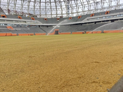 Работы по строительству саранского стадиона Чемпионата мира по футболу FIFA 2018 в России™ ведутся в активном темпе. Засев поля на стадионе начали в начале октября. Прогнозы специалистов оправдались — трава взошла до начала зимы, что, по словам экспертов FIFA, очень важно.