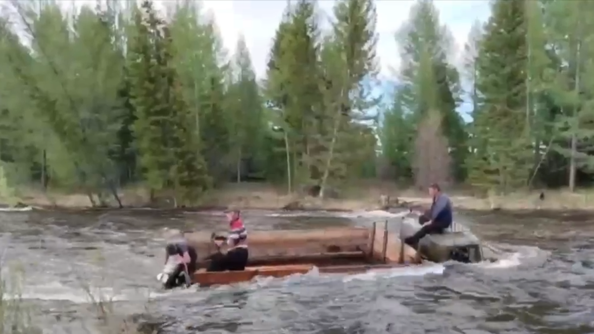 Неистовствовавший поток грозил вот-вот опрокинуть грузовик, и 4 человека едва ли выжили бы.